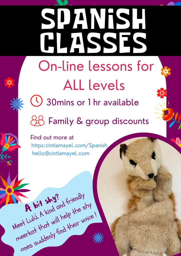 One of the highlights of my classes (especially for beginners) is Lulú the Meerkat, a friendly puppet character who helps learners feel comfortable, confident, and excited to speak. Lulú removes the pressure of “getting it right,” turning every session into a playful, low-stress experience that builds real conversational skills.